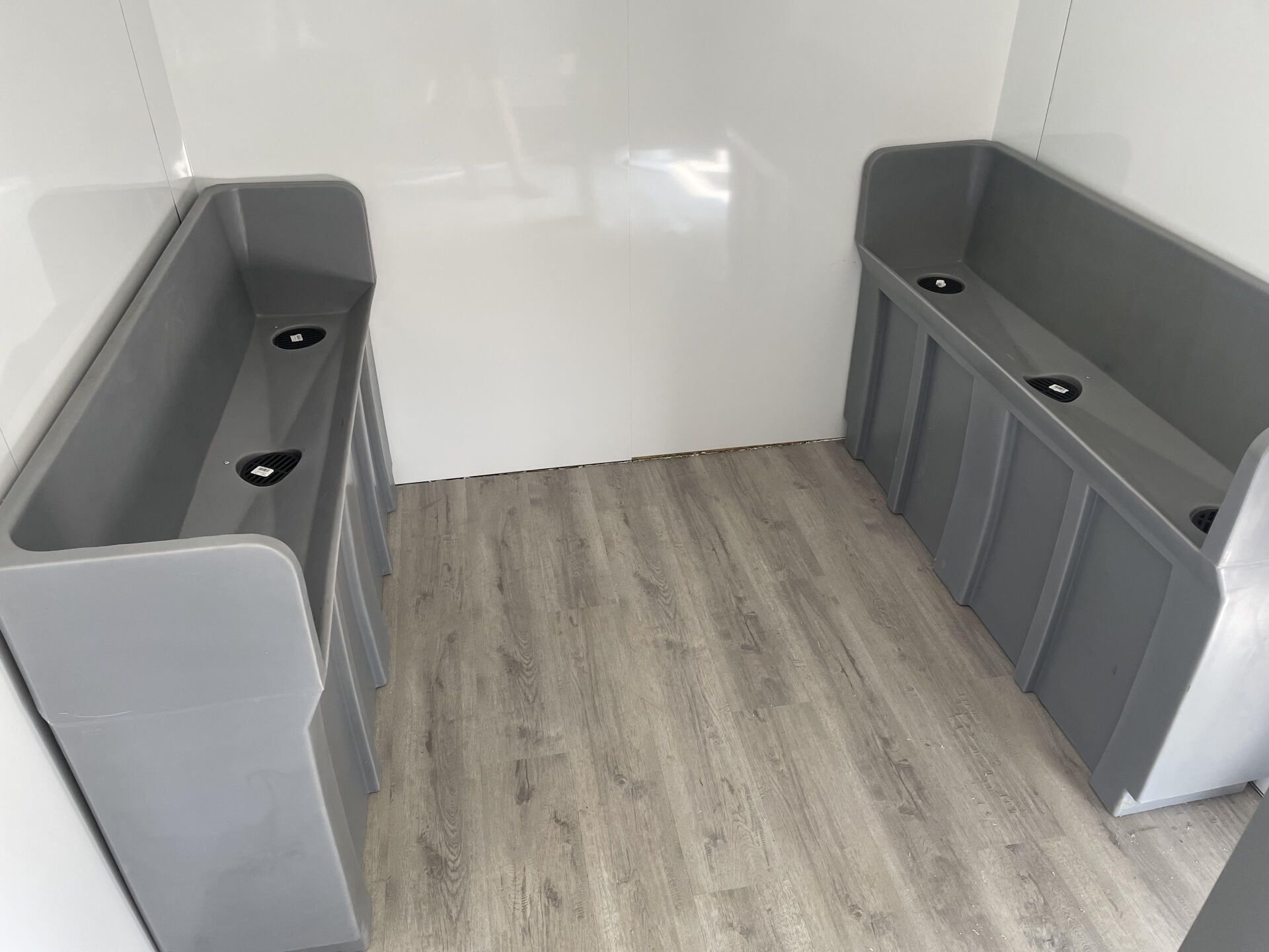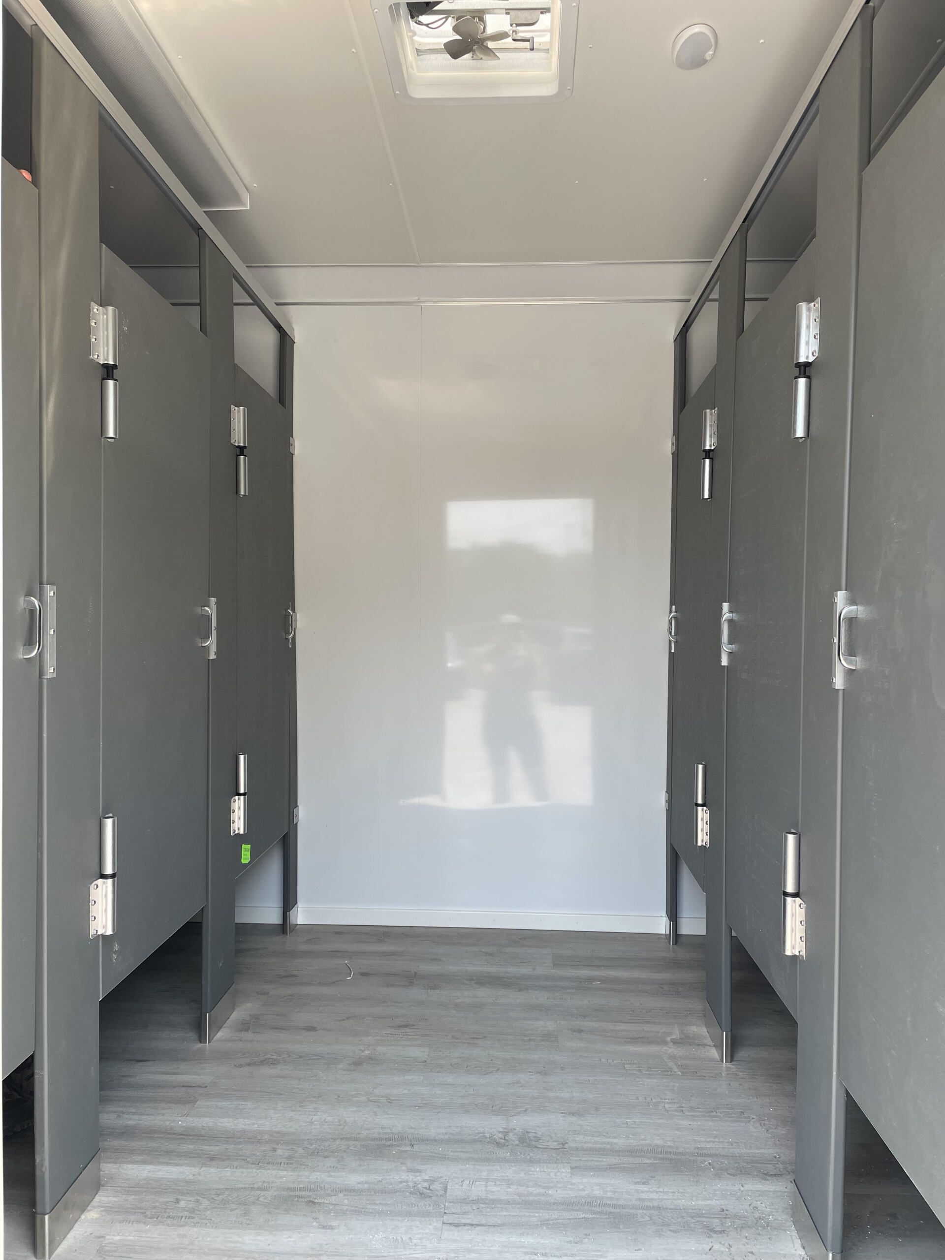 New to our lineup! We are now offering a non-flush restroom trailer. This trailer is equipped with five stalls on the women's side and three stalls and urinals on the men's side. Both sides have hand sanitizing stations in them.
