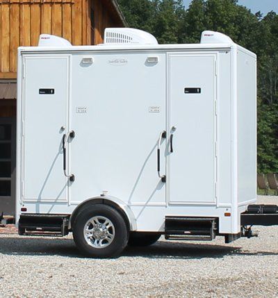 Having a large wedding reception, vendor fair, or small festival? This trailer with flushing toilets, running water, lights, and air conditioning may be perfect for you!